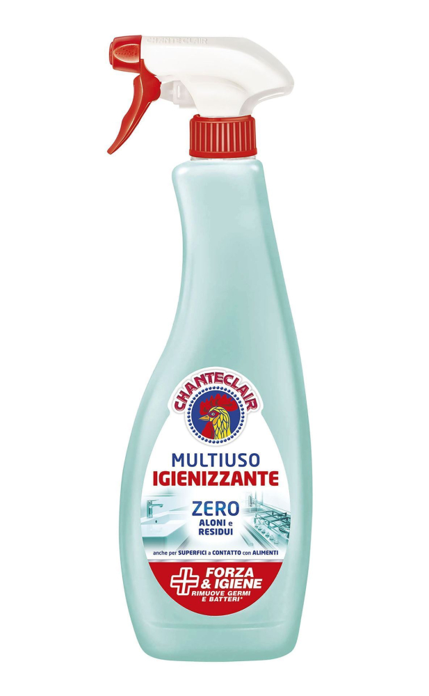 Chanteclair Multiuso Igienizzante je univerzálny čistiaci prostriedok s dezinfekčným účinkom, ideálny na rýchle a efektívne čistenie všetkých bežných povrchov v domácnosti. Odstraňuje nečistoty, mastnotu aj pachy a zanecháva hygienicky čistý povrch bez šmúh.