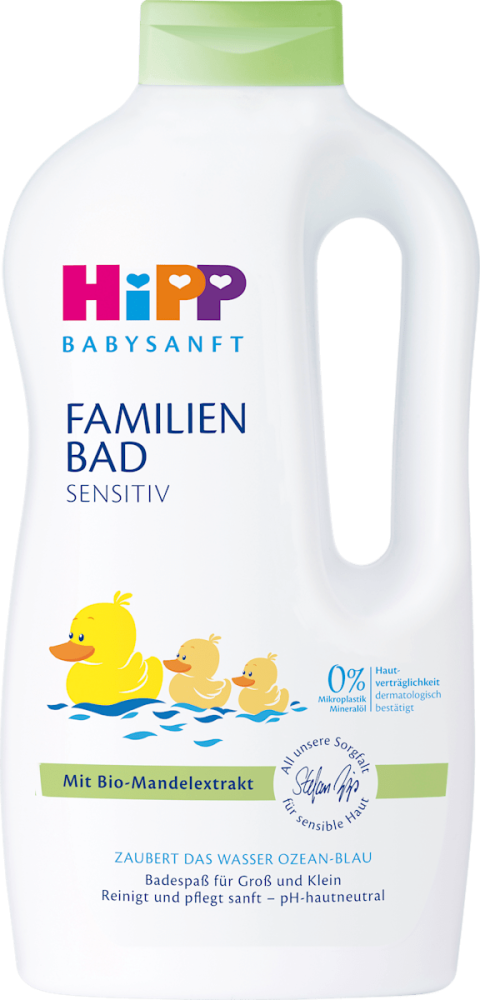 HiPP Babysanft Familienbad Sensitiv je jemný kúpeľový doplnok, ktorý bol vyvinutý s ohľadom na potreby citlivej detskej pokožky, no vďaka svojmu šetrnému zloženiu je perfektný aj pre dospelých.