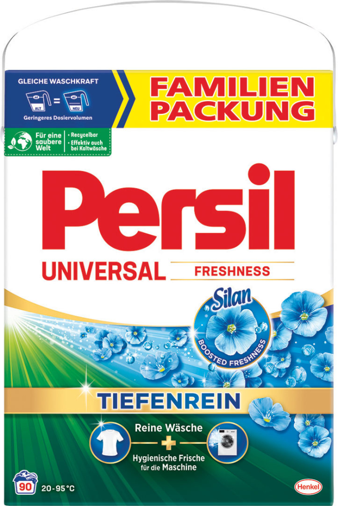 Persil Universal 90PD so Silanom je kombinácia, ktorá prináša to najlepšie z dvoch svetov – profesionálnu praciu silu Persilu a jemnú, dlhotrvajúcu vôňu Silanu.