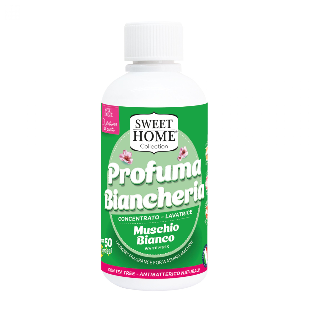 Objavte elegantnú a jemne zmyselnú vôňu s parfumom na bielizeň Sweet Home Muschio Bianco. Jeho čisté a teplé tóny bieleho pižma dodajú bielizni pocit hebkosti, sviežosti a sofistikovanej jemnosti. Perfektná voľba pre tých, ktorí milujú elegantné, nadčasové arómy.